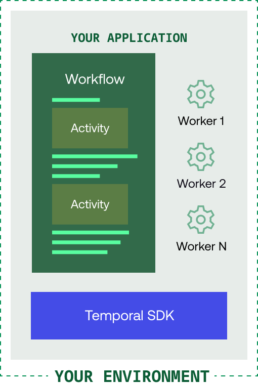 - A Workflow written in your programming language of choice and your installed Temporal SDK in that language. A Workflow defines the overall flow of the application.